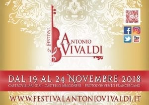 CASTROVILLARI (CS) – Fervono i preparativi per la kermesse di eventi della seconda edizione del “Festival Antonio Vivaldi”, progetto promosso dall’associazione culturale “Cosenza Autentica” nella persona del presidente e progettista Melicchio Giulio, con il cofinanziamento da parte della Regione Calabria e i patrocini della Camera di Commercio, Industria, Artigianato e Agricoltura di Cosenza, della Provincia di Cosenza e del Comune di Castrovillari; la produzione del Festival interesserà il Castello Aragonese e il Protoconvento francescano di Castrovillari (CS) dal 19 al 24 novembre.