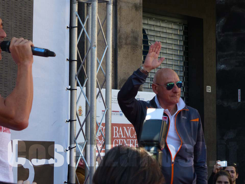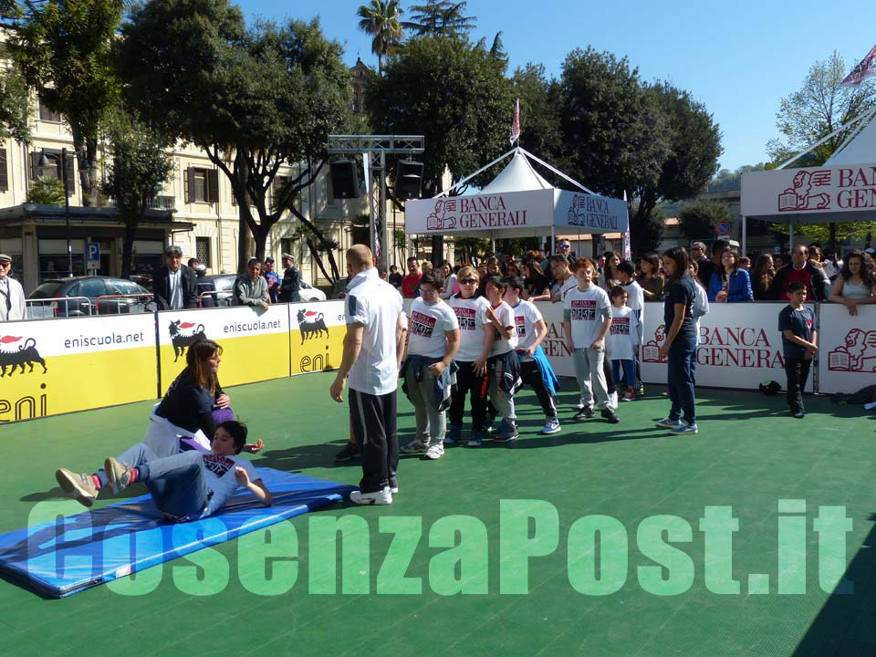 Con loro questa mattina a Piazza dei Bruzi circa 500 bambini delle scuole elementari e medie di Cosenza. I ragazzi guidati dai loro insegnanti, hanno accolto i campioni con felicità ed entusiasmo e, in maniera organizzata, hanno preso parte agli stage sportivi guidati dai campioni.