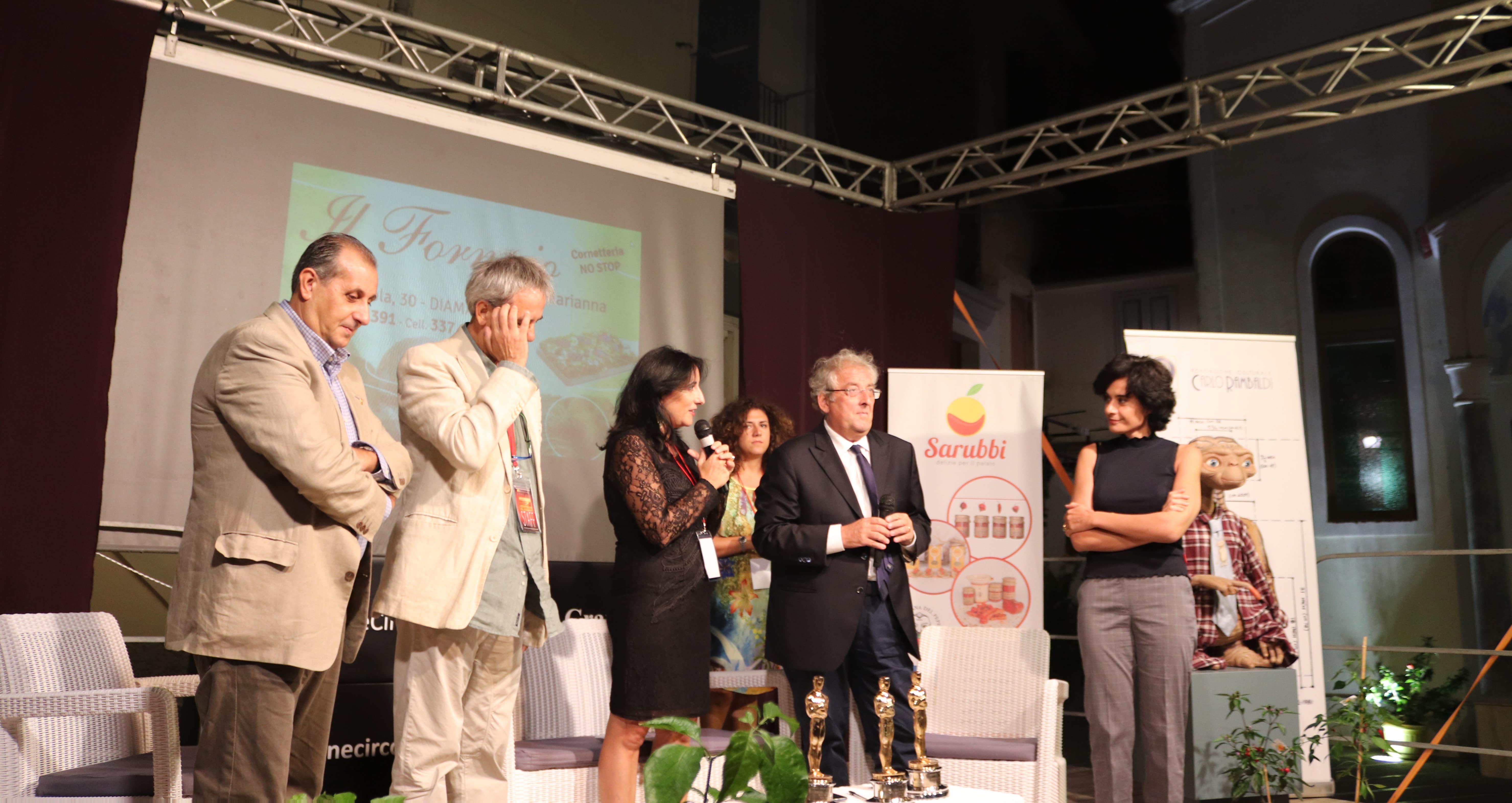 Il regista ha ottenuto un riconoscimento da parte del Cinecircolo Maurizio Grande per aver mostrato come l’umanità anche nelle situazioni più estreme, ha sempre la possibilità di “alzare un dito” in segno di ribellione. Una targa è stata conferita dal direttore Artistico del Mediterraneo Festival Corto, Francesco Presta e dal direttore Tecnico, Ferdinando Romito anche alla figlia di Carlo Rambaldi, Daniela, vicepresidente della Fondazione Carlo Rambaldi, per l’impegno profuso nella diffusione della memoria del padre, non solo in campo cinematografico ma anche nel civile e nel sociale. La Fondazione Carlo Rambaldi, infatti, lavora alacremente nelle scuole e al fianco dei giovani. “Mio padre proveniva da un piccolo paese dell’Emilia Romagna, si è dovuto trasferire prima a Ferrara e poi a Roma per riuscire a realizzare il suo sogno – ha detto Victor Rambaldi – per questo la Fondazione vuole essere di sostegno ai giovani di talento delle province per dare loro le stesse possibilità di chi vive nelle grandi città”. Daniela Rambaldi ha parlato dell’impegno nelle scuole: “ET è stato riconosciuto come icona del diverso che viene a noi in cerca di accoglienza. Nelle scuole è diventato il simbolo della lotta al bullismo e al razzismo, è il diverso che va protetto”. Daniela ha raccontato di come i bambini, più che gli adulti, accolgano il messaggio del film e lo interiorizzano. “Al termine della proiezione chiediamo ai bambini di disegnare il personaggio a modo loro e dai disegni si capisce quale aspetto di ET hanno recepito di più”. “I bambini sono terreno fertile per seminare il buono” ha aggiunto Daniela Rambaldi. A proposito di scuole, il direttore della Fondazione Carlo Rambaldi, Giuseppe Lombardi, ha proposto un “Rambaldi Lab” anche nelle scuole di Diamante. Una proposta accolta felicemente dalla comunità diamantese e dalla Dirigente dell’Istituto Comprensivo, presente alla serata. Victor e Daniela Rambaldi, unitamente a Lombardi hanno, infine, lanciato un appello al mondo della politica: “Il sogno di Carlo era quello di portare la Calabria nel mondo delle stelle: stiamo lavorando per sviluppare dei grandi Studios dove le grandi produzioni possano girare film, dove i giovani di talento possano affinare le proprie abilità con gli effetti speciali; non solo un parco tematico ma una Academy di altissimo livello per far conoscere i meravigliosi scenari che la Calabria ha da offrire”.