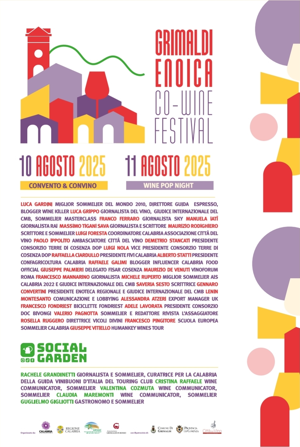 I talk previsti, con personalità importanti del vino calabrese e nazionale, oltre che addetti ai lavori, tra giornalisti e social garden, sono l’altro motore- importante- dell’iniziativa organizzata da Calabria Straordinaria, Regione Calabria, Arsac, associazione “Grimaldi in rosso”, con il patrocinio del Comune di Grimaldi, Provincia di Cosenza e Città del vino.