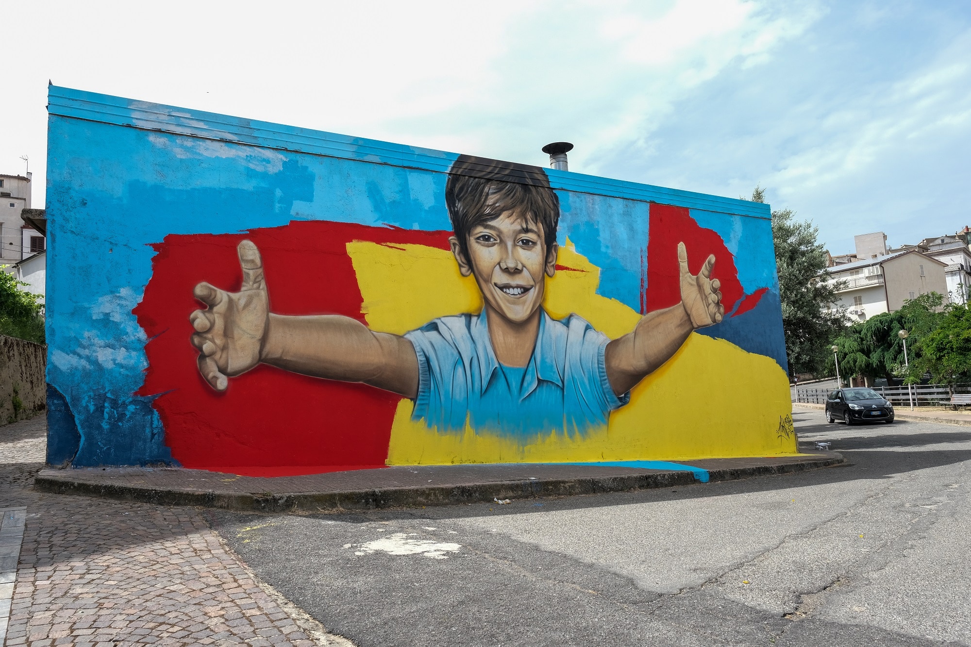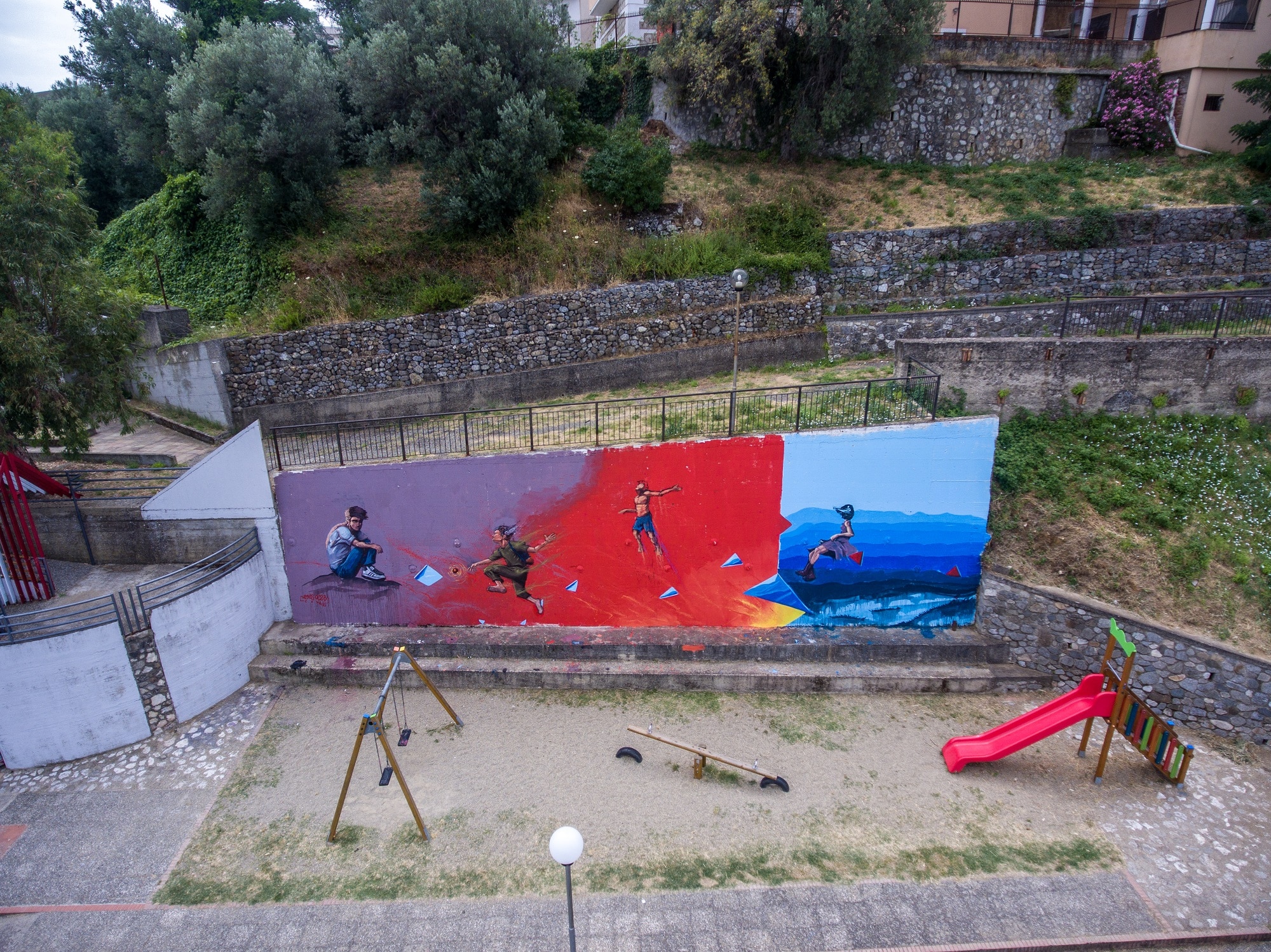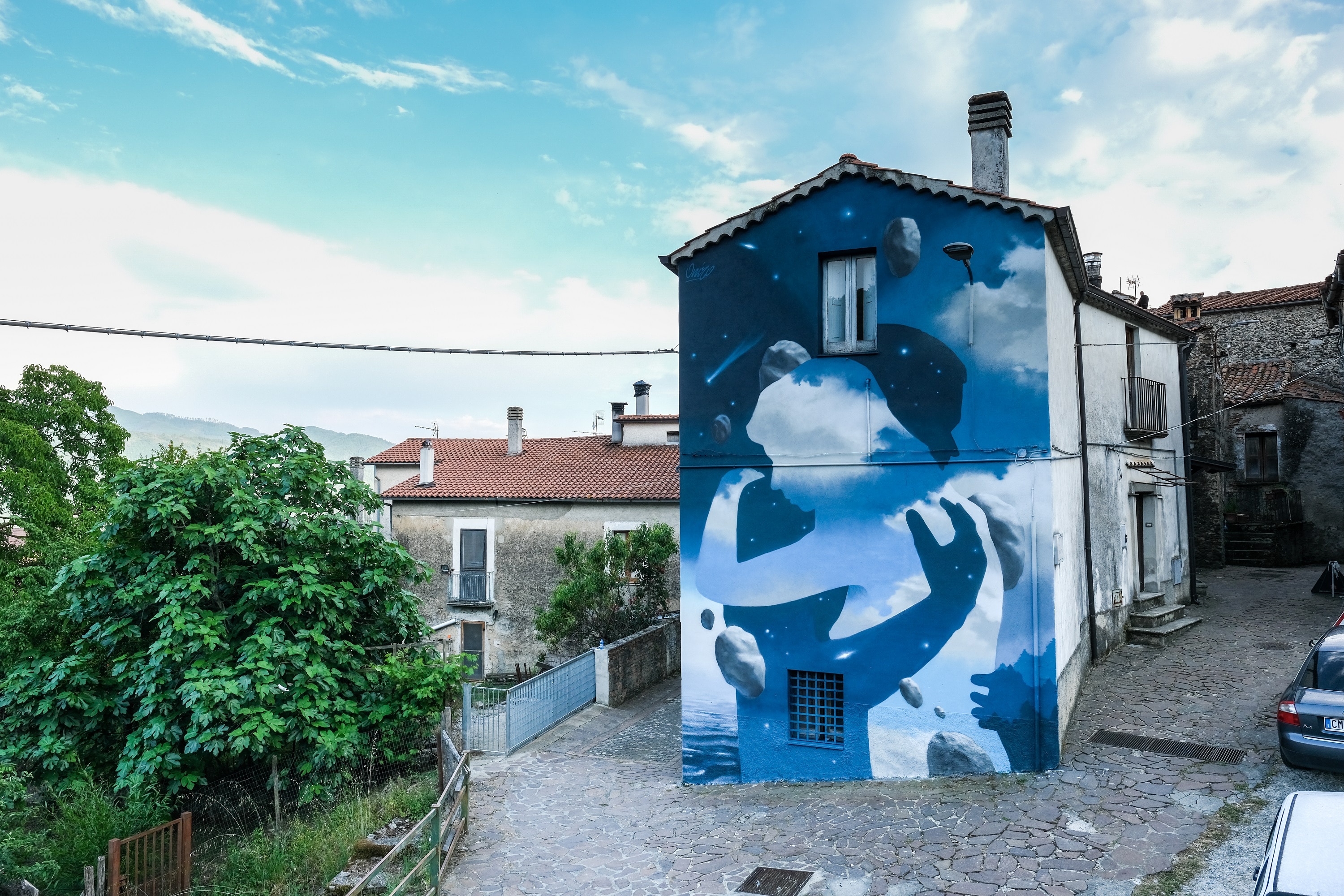 La tematica a San Giorgio Albanese, invece, assume un’eccezione diversa, la piccola comunità Arbereshe è una sede Erasmus ed ogni anno ospita decine di studenti da tutto il mondo. Claudio Morne, Zeus e anche qui Emeid, hanno realizzato tre diverse opere che sono il simbolo della gratitudine della cittadina nei confronti delle centinaia di studenti che hanno deciso negli anni di studiare lì.
