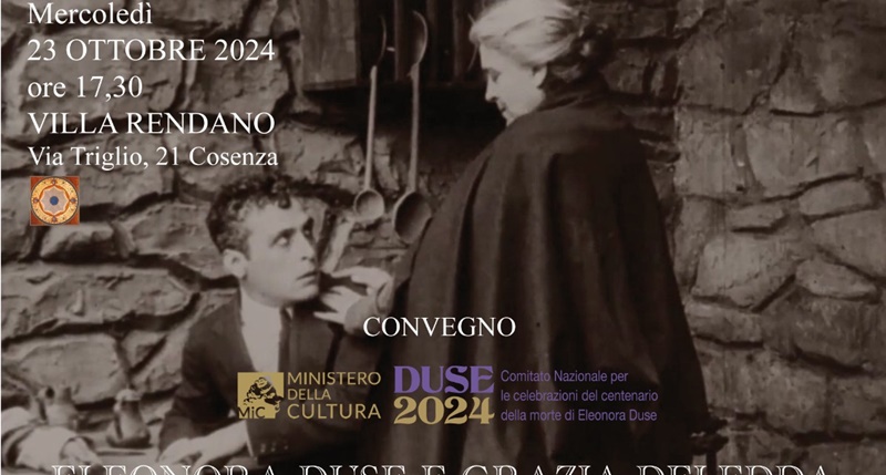 Cosa accomuna Eleonora Duse e Grazia Deledda? Potremmo definirle due femministe ante litteram: Deledda e Duse, nel XIX secolo, ciascuna nel proprio ambito, diedero il loro contributo per l’emancipazione e la dignità femminile, non fermandosi alle apparenze, non facendosi ostacolare dai pregiudizi e perseguendo i propri obiettivi. L’attrice “divina”, a 100 anni dalla sua morte, e la scrittrice premio Nobel, a 120 anni dalla prima edizione del romanzo “Cenere”, unico film interpretato dalla Duse, saranno celebrate in un convegno che si svolgerà il 23 ottobre, alle 17,30, a Cosenza, a Villa Rendano; il tema: “Eleonora Duse e Grazia Deledda, un Novecento tra teatro e narrativa”.