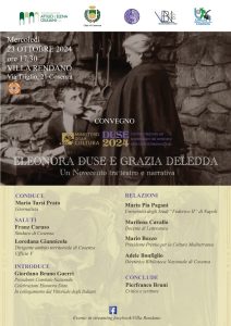 L’appuntamento rientra nelle iniziative volute dal Ministero della Cultura, previste in tutta Italia, per la celebrazione del centenario della morte di Duse, e che si svolgono a cura del Comitato nazionale Duse, per la cui presidenza il Mic ha nominato Bruno Giordano Guerri, presidente della fondazione “Il Vittoriale degli italiani”. “Un curioso destino – dice Guerri – unisce e divide Grazia Deledda ed Eleonora Duse. La scrittrice è poco ricordata e, purtroppo, anche poco letta; Duse, della quale non si hanno registrazioni di spettacolo in teatro, ovviamente, per motivi di epoca storica in cui ha vissuto, è famosissima ancora e celebrata. Duse è ricordata anche per la sua famosa storia d’amore con D’Annunzio, ma c’è di più, qualcosa che verrà esplorata proprio in questo convegno”. Al convegno anche Pierfrancesco Bruni, scrittore e critico letterario, componente della giunta del Comitato nazionale per il centenario della morte di Eleonora Duse.