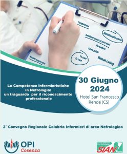 Grande attesa, dunque, per questo evento formativo sulla gestione della malattia renale cronica, che ha registrato il sold out dei posti disponibili già a pochi giorni dall’apertura delle iscrizioni, e che vedrà la presenza di operatori sanitari provenienti da tutto il territorio calabrese, dalla Campania e dalla Sicilia, rappresentando un ulteriore traguardo per l’Opi di Cosenza ed estrema soddisfazione per il presidente Fausto Sposato che punta, da sempre, alla formazione costante e continua dell’intera categoria.