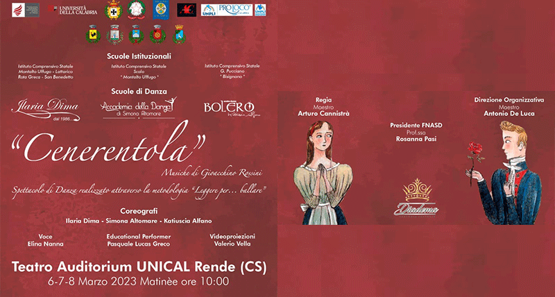 In particolare, il progetto nasce da un’idea di FNASD e si sviluppa attraverso la lettura di un testo contestualmente a una collaborazione fra le scuole di danza e le scuole istituzionali primarie e secondarie, nella fattispecie di Montalto Uffugo Centro e Lattarico, Montalto Scalo e Bisignano. Quest’anno, è stato scelto il testo “Cenerentola” Charles-Perrault.