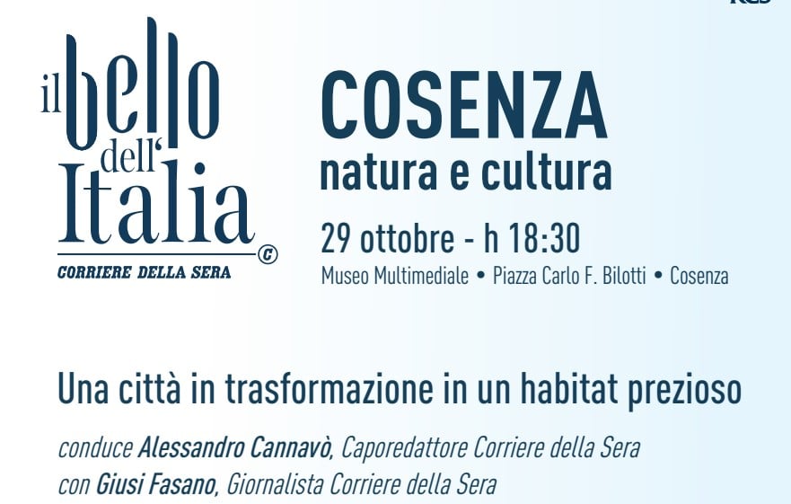 L’ingresso è libero con prenotazione obbligatoria fino a esaurimento posti (cosenza-ilbellodellitalia@rcs.it).