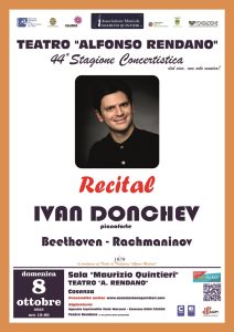 La scelta artistica del M° Donchev, per il concerto in cartellone, costruita sull’esecuzione di due delle opere più rappresentative della letteratura pianistica, la commovente Sonata op. 27 n. 2 “Al chiaro di luna” di Ludwig van Beethoven e l’impetuosa e struggente Sonata n. 2 op. 36 di Sergej Rachmaninov, offre all’artista la possibilità di attingere ad una sconfinata tavolozza di possibilità espressive ed armoniche, capaci di esaltare appieno le potenzialità espressive del pianoforte.