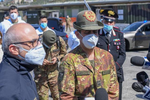 In un luogo, prima abbandonato è stato allestito uno dei campi militari meglio attrezzati d’Italia, dotato anche di un laboratorio per la processazione dei tamponi.