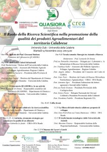 La partecipazione a questa importante iniziativa si inserisce perfettamente nella mission dell’Ente e mira a fornire un contributo rilevante alla discussione sul potenziale della ricerca scientifica nel consolidamento e nella promozione della qualità dei prodotti agroalimentari del territorio calabrese. Tale impegno si sviluppa all’interno di una già avviata sinergia istituzionale con il Dipartimento di Agricoltura della Regione Calabria e con il Dipartimento di Chimica dell’UNICAL, un legame reso possibile anche grazie al lavoro condotto dal compianto Prof. Giovanni Sindona, fondatore del laboratorio QUASIORA, la cui attività verrà ricordata nel corso del convegno.