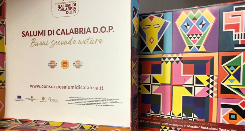 Cinquecento box raffiguranti un’opera di Nik Spatari per promuovere i salumi Dop