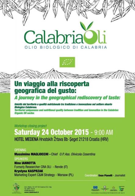 Domani, sabato 24 ottobre, il progetto CalabriaOli giunge alla sua conclusione. L’ultima tappa del progetto toccherà la Croatia