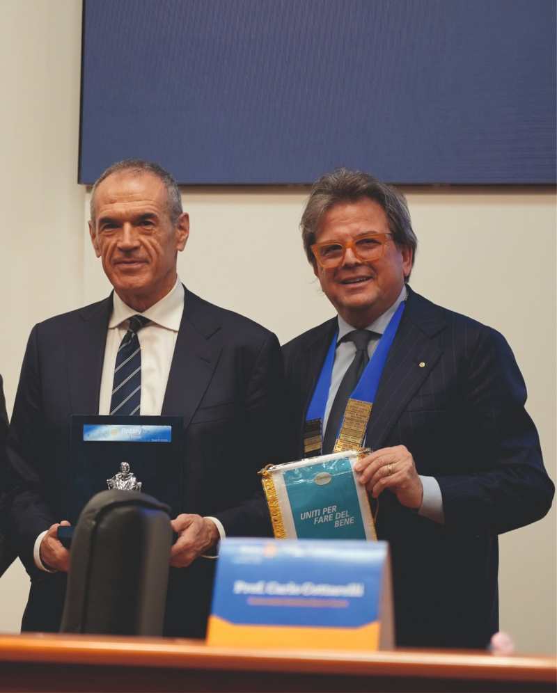 L’iniziativa, promossa dal Rotary Club Rende in collaborazione con il Dipartimento di Economia, Statistica e Finanza “Giovanni Anania” (DESF) dell’Università della Calabria, ha rappresentato un momento di straordinario valore culturale e istituzionale per l’intero territorio regionale. Nel corso della cerimonia, il Presidente del Rotary Club Rende, Cav. Sergio Mazzuca, ha conferito ufficialmente il riconoscimento al Prof. Cottarelli, sottolineandone il prestigioso profilo scientifico e istituzionale e il contributo offerto al dibattito economico nazionale e internazionale, nonché il valore della sua testimonianza per le giovani generazioni e per il futuro del Mezzogiorno.