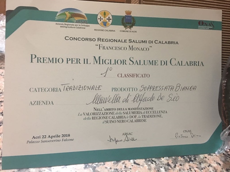 Poi… la sorpresa! Lo stupore! La GIOIA! Vincitori del primo premio! Nella patria della soppressata bianca ha vinto la loro azienda.