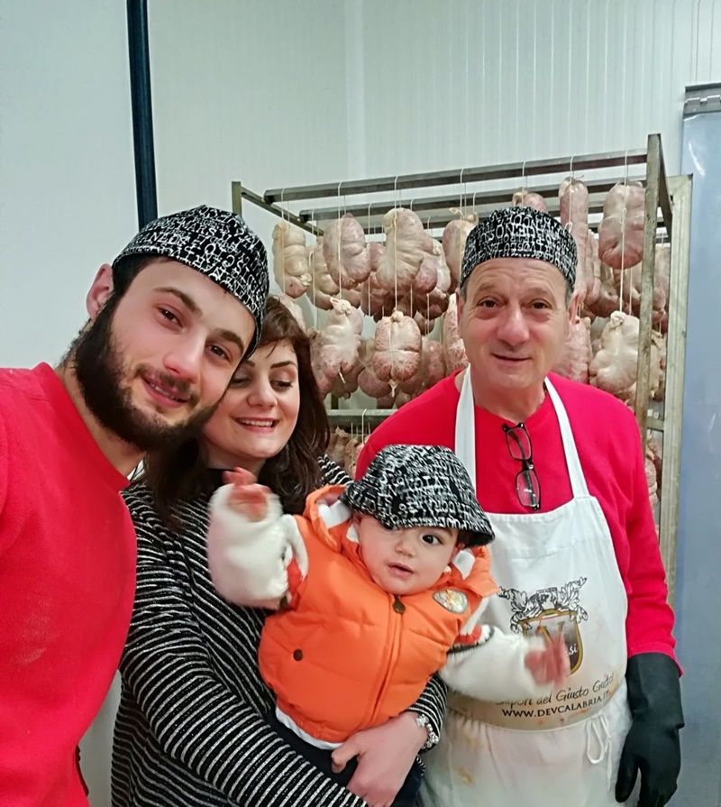 Fra i produttori del Reventino, le mani e la testa della famiglia Tiriolese, che da soli due anni ha deciso di passare dalla macelleria alla realizzazione di un piccolo laboratorio artigianale per la produzione di salumi tipici calabresi sperimentandosi anche nella realizzazione del salume bianco.