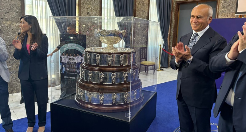 Prima avvolta nel tricolore, poi in tutta la sua maestosità. La Coppa Davis è arrivata a Cosenza e fa bella mostra di sè da questa mattina nella casa comunale, nel salone di rappresentanza, dove resterà fino alle 20,00 di questa sera. Un vero e proprio “pellegrinaggio” quello che ha accompagnato l’esposizione a Palazzo dei Bruzi della più celebre insalatiera d’argento al mondo, con oltre 120 anni di vita. Un trofeo, sicuramente il più prestigioso, vinto dall’Italia del tennis maschile due volte. Dall’Italia la Davis, che Sinner e soci si sono aggiudicati nel novembre del 2023 a Malaga, battendo l’Australia, mancava da ben 47 anni, dal 1976, quando Panatta, Bertolucci, Barazzutti e Zugarelli, con Nicola Pietrangeli capitano non giocatore, sconfissero a Santiago del Cile i padroni di casa.