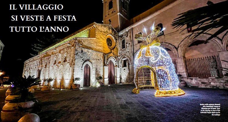 IL VILLAGGIO SI VESTE A FESTA TUTTO L’ANNO. L’idea di un villaggio luminoso – si legge nel servizio del magazine dei Borghi Più belli d’Italia che dedica a Tropea la rubrica Percorsi – ricco di colori e di eventi, che accompagna il cittadino e il viaggiatore a godere la magia del Natale, nasce come esperimento da azzardare e diventa progetto vincente. L’espediente alimenta la festa interiore, la proietta esternamente e riesce a rendere consapevole della straordinarietà del momento anche il più distratto. La luce dà energia, apre alla speranza: e per la gente del Sud è l’emblema della sua identità. Diffonderla in mille bagliori colorati assieme a una miriade di situazioni gioiose significa coinvolgere tutti in un clima da favola, non stucchevole perché riflette la personalità del luogo. Tropea – si continua nella lettura – ha iniziato a colorarsi di Natale ai primi di ottobre: salire dal mare, col profumo di salsedine sulla pelle e stupirsi con i primi addobbi sminuisce la nostalgia della stagione balneare che volge al termine e conforta prospettando l’allegria degli eventi preannunciati. La città dal respiro universale si veste di gran gala e nel borgo, che in ogni tempo si è distinto per la sua impareggiabile classe, tutto appare armoniosamente perfetto. Anche i palazzi nobiliari, i portali di granito, gli stemmi araldici, le maschere portafortuna, le edicole votive, le buche pontaie e i ciuffi di capperi si fanno complici del gioco collettivo che colora di suggestione ogni angolo.