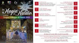 Da Venerdì 16 a sabato 24 dicembre la Pro Loco Tropea, proporrà la zampogna annunciatrice per le vie del borgo. Sabato 17 alle ore 16,30 in Villa Ghirlanda torna l’animazione per bambini, mentre alle ore 17 in Pi 4a edizione di Tropea Villaggio di Nataleazza Vittorio Veneto la Zeppolata a cura di Valentur. Music Live, domenica 18 alle ore 18 nel centro storico. Lunedì 26 alle ore 17 in Largo Mercato Il Presepe Vivente a cura di AssCom in collaborazione con il Gruppo Folk Le Chiazzarole di Tropea di Marcella Romano. Sabato 31 alle ore 18,30 in piazza Ercole si terrà il Brindisi di Fine Anno a cura dell’Amministrazione Comunale.