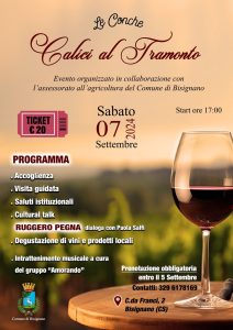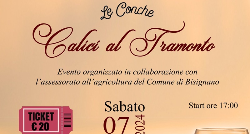 Imperdibile  appuntamento  “Calici al Tramonto” una degustazione di vini all’aperto che si svolge tra i filari dei vigneti della cantina “Le Conche” , in località Franci – Bisignano il 7 settembre 2024 a partire dalle ore 17:00 .
