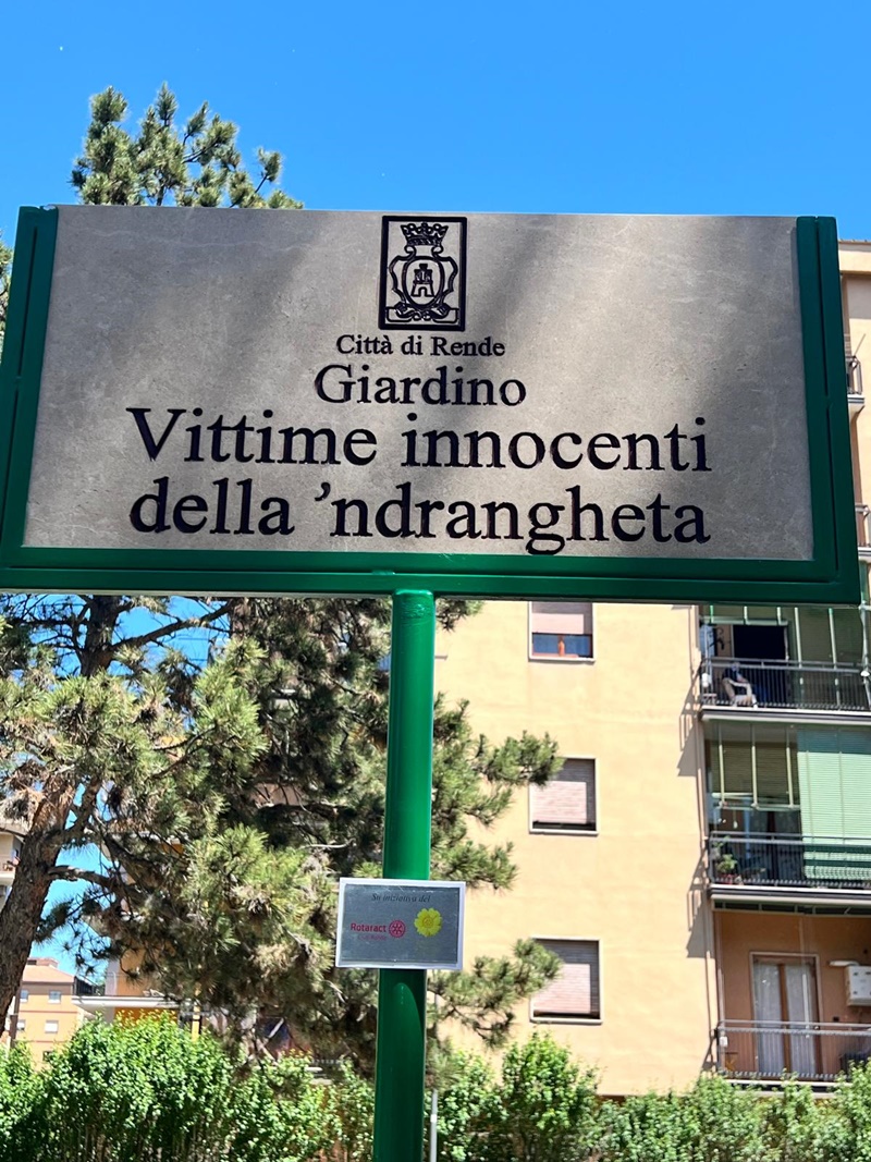 Il Rotaract di Rende ha inaugurato ” Il giardino delle vittime innocenti della Ndrangheta “, un luogo green della legalità all’incrocio tra via Fratelli Bandiera e Via Giacomo Matteotti