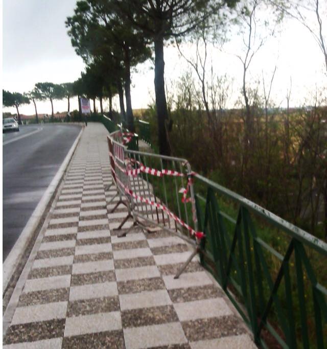 A quanto sembra, la ringhiera metallica posta a protezione del marciapiede, non è consona a proteggere il margine laterale della stessa strada che ha dunque bisogno di una reale barriera di sicurezza.