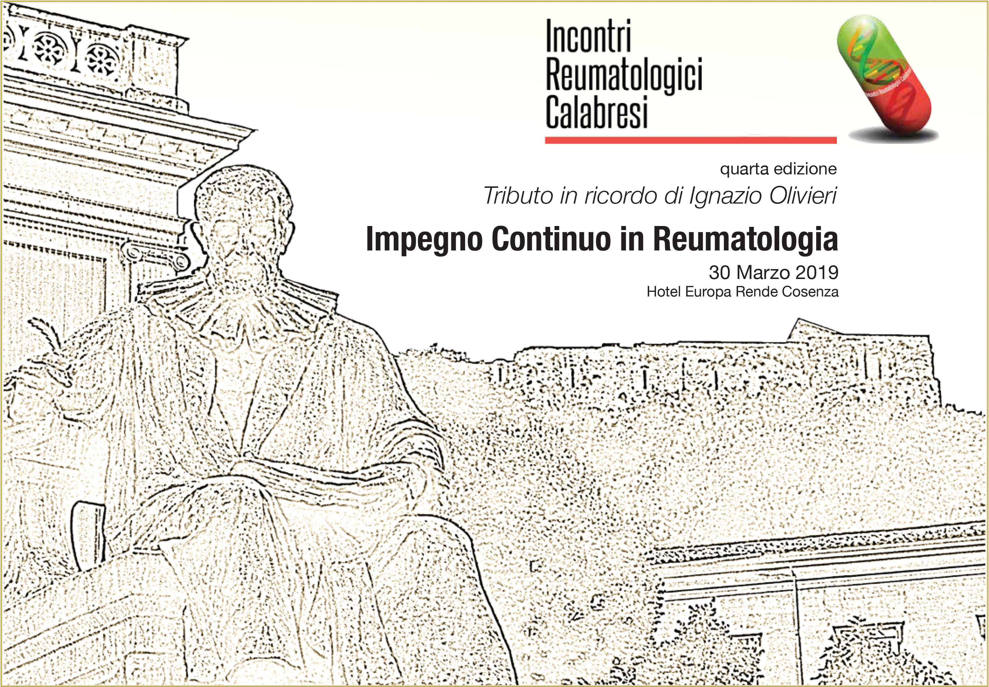 La quarta edizione degli Incontri Reumatologici Calabresi – Impegno Continuo in Reumatologia è stata organizzata dalla J&B di Cosenza, il corso è accreditato ECM per 80 Medici Chirurghi (tutte le specializzazioni).