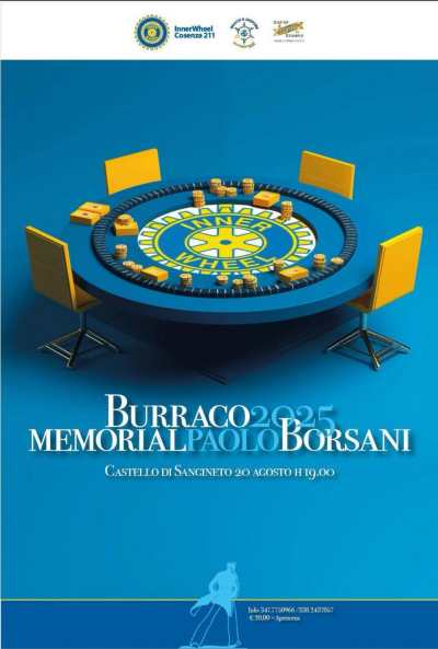 Sul Tirreno Cosentino altro evento in beneficenza e questa volta di tratta di un torneo di Burraco. Ed e’ il club l’Inner Whell Cosenza ad organizzare. Al Castello di Sangineto il presidente Concetta Ambrosio ha curato tutto nei minimi dettagli per un torneo dedicato a Paolo Borsani. Non resta che partecipare anche perché l’estate ancora non è finita….