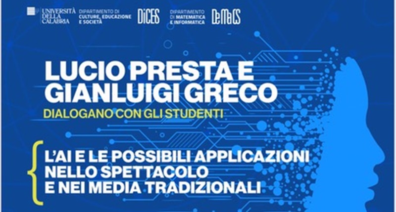 Di questo e di altro, con particolare riferimento all’impatto dell’AI. sui media e nel mondo dello spettacolo, parleranno, in un dialogo con gli studenti dell’Università della Calabria, Lucio Presta e Gianluigi Greco, nel corso di un Seminario, coordinato dal prof. Giovanbattista Trebisacce e organizzato dai Dipartimenti di Matematica e Informatica e di Culture, educazione e società.