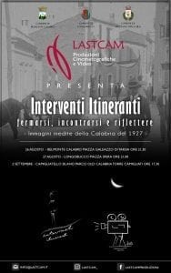 Interventi Itineranti, fermarsi, incontrarsi e riflettere, ideato e realizzato dalla Lastcam Produzioni Cinematografiche e Video, vuole essere un percorso in movimento per conoscere e promuovere i territori e le culture e dunque divenire sempre più consapevoli dell’importanza e del valore del proprio patrimonio ambientale, storico e culturale, risorsa importantissima su cui puntare per incentivare un turismo sostenibile e uno sviluppo economico del territorio. Interventi itineranti, saranno realizzati nel corso dell’intero anno per arrivare nei piccoli paesi e nelle città del territorio calabrese e anche fuori regione. Ritrovare l’atmosfera di una proiezione cinematografica e comunque dell’immagine in senso ampio, in luoghi insoliti, interni od esterni, da location naturali come può esserlo un bosco, alla piazzetta di un borgo o piazza di una città.