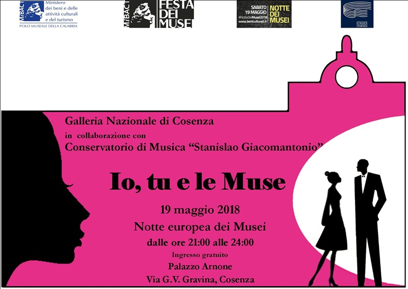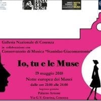 La Galleria Nazionale di Cosenza, sabato 19 maggio 2018, dalle ore 21.00 alle ore 24.00, in collaborazione con il Conservatorio di Musica “Stanislao Giacomantonio” presenterà l’iniziativa Io, tu e le Muse, una lunga serata di suoni e di arte.