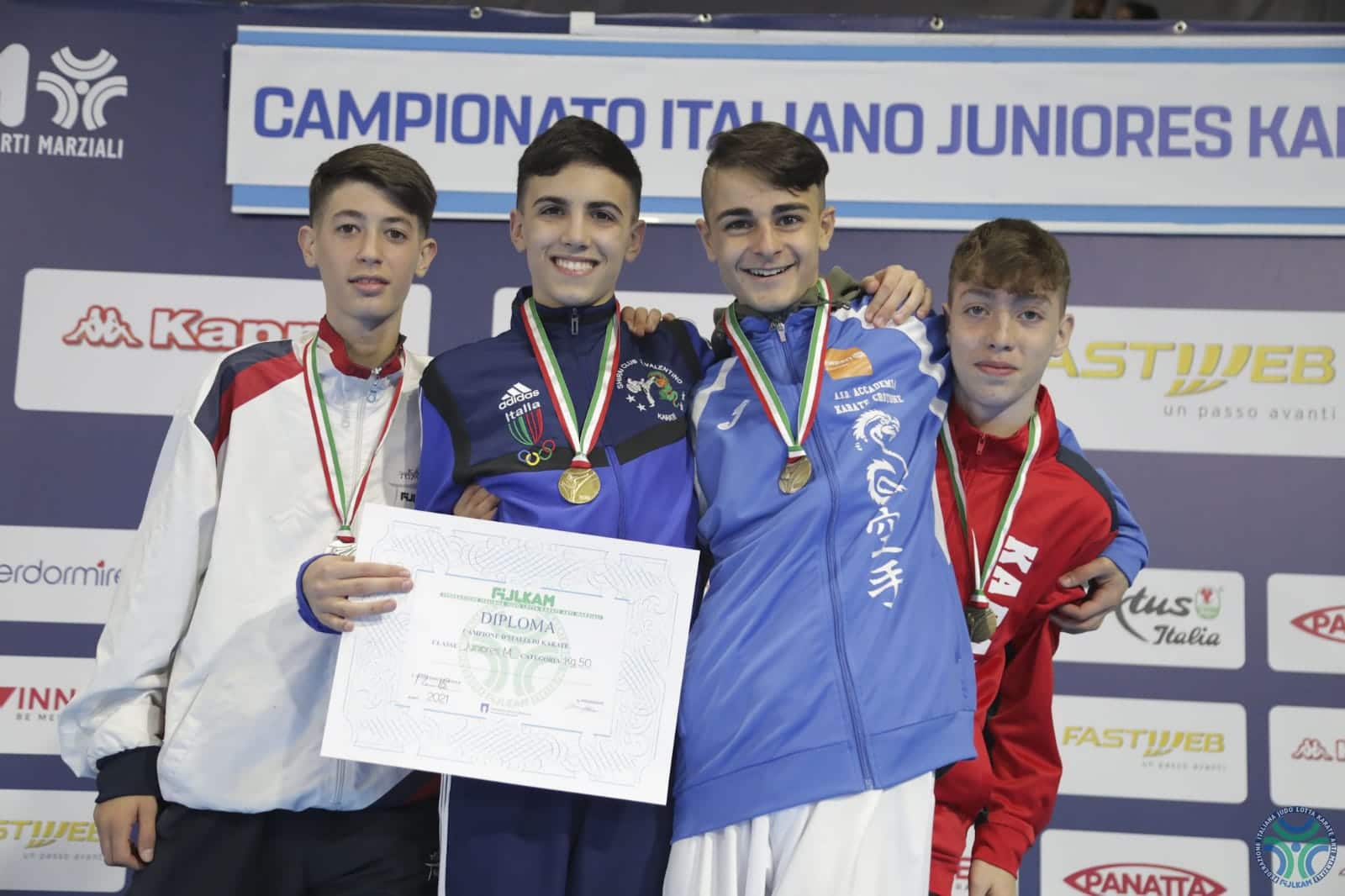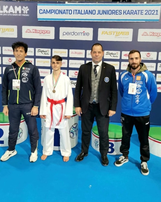 Salvatore Valente, classe 2005, conquista un bronzo nella finale nazionale del campionato italiano di karate juniores (50 kg) tenutosi ieri 28/11/2021 presso il centro olimpico Palapellicone di Ostia Lido (Roma).