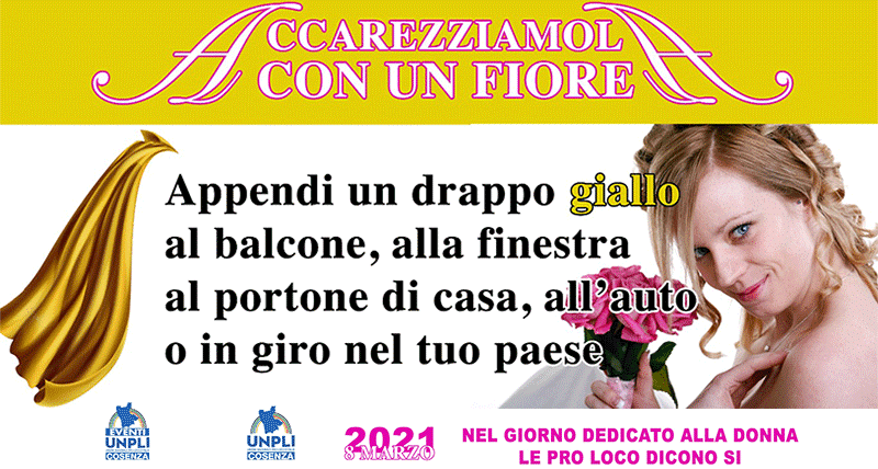 In un difficile momento, come quello che tutta Italia sta attraversando, non soltanto per il COVID-19 ma anche per i numerosi femminicidi che purtroppo giornalmente si succedono e per dare un segnale di speranza e di importanza al ruolo della donna, i delegati alla comunicazione di UNPLI Cosenza, il consigliere provinciale Piero Sciammarella e la dott.ssa Manuela Filice, partendo dalla Media Valle del Crati, ma coinvolgendo tutta la provincia di Cosenza, hanno programmato e ideato la manifestazione ACCAREZZIAMOLA CON UN FIORE – nel giorno dedicato alla donna le Pro Loco dicono si.