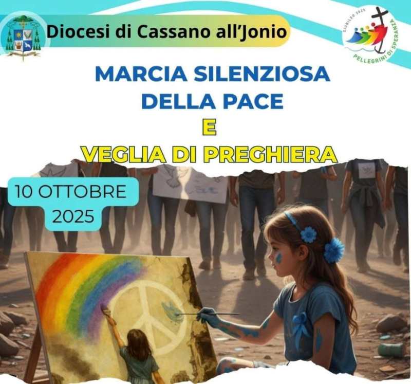 Considerata la concomitanza con il Giubileo diocesano a Roma, previsto per i giorni 11 e 12 ottobre, la comunità diocesana anticiperà la giornata di digiuno e preghiera a venerdì 10 ottobre. Il momento di preghiera avrà inizio alle ore 18:45 presso il monumento dell’Immacolata a Cassano e si proseguirà con una marcia silenziosa verso la Basilica Minore Santa Maria del Lauro dove si terrà la Veglia di Preghiera per la Pace alle ore 19:15.
