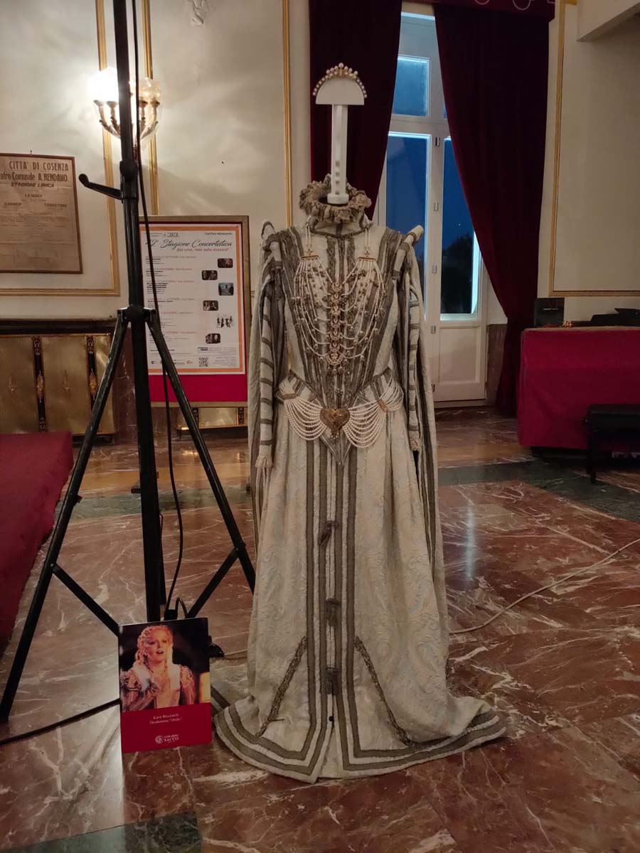 Per la prima volta in Calabria, sono stati esposti contemporaneamente i costumi ed i gioielli dell’eccellenza calabrese indossati dalle grandi dive del cinema e dell’opera lirica, in particolare da: Liz Taylor, Nadina Bulicioff, nel film Il giovane Toscanini con la regia di Franco Zeffirelli; Glenn Close, Regina Gertrude, nel film Amleto con la regia di Franco Zeffirelli; Katia Ricciarelli, Desdemona, nel film Otello con la regia di Franco Zeffirelli; Monica Bellucci, Paolina Bonaparte, nel film N (Io e Napoleone) con la regia di Paolo Virzì; Daniela Dessì, Regina Elisabetta, nel Don Carlo diretto da Riccardo Muti con la regia di Franco Zeffirelli. La mostra, che si ripeterà anche l’11 dicembre dalle ore 19.00 per gli spettatori de “La traviata”, è stata allestita dalla gioielleria Scintille Montesanto. Inoltre, per l’opera di Verdi, l’orafo crotonese ha realizzato quattro parure che saranno indossate dalle protagoniste Violetta e Flora. Il maestro Sacco non ha potuto partecipare alla mostra e non riuscirà ad essere presente allo spettacolo perché in contemporanea è impegnato al Teatro alla Scala, all’inaugurazione del suo showroom di Milano e alla presentazione del suo secondo libro “Come l’araba fenice. Rinascere dopo il Covid-19” che si terrà al Caffè Pedrocchi a Padova.