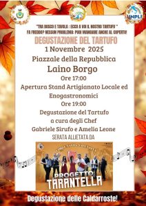 Domani 1 novembre sarà il tartufo il protagonista della esperienza sensoriale e gustativa in programma in Piazza della Repubblica a partire dalle ore 17:00 con l’apertura degli stand di artigianato locale ed enogastronomici. “Tra bosco e tavola” metterà poi in risalto il re dell’autunno, il tartufo del Pollino per il quale è cresciuta la rete dei cavatori professionisti all’interno del territorio e che sta diventando un vero must gastronomico da abbinare a tavola e sul quale costruire una esperienza immersiva per quanti cercano il contatto diretto con la natura del parco. Saranno gli chef Gabriele Sirufo e Amelia Leone a preparare i piatti a base di tartufo che andranno in degustazione a partire dalle ore 19:00 insieme alle caldarroste. Ad arricchire la serata la musica dei progetto Tarantella.