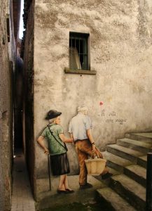 Nel borgo della cittadina che detiene anche il primato di essere geosito dell’Unesco all’interno del perimetro del Parco nazionale del Pollino, il centro storico si arricchisce anche dei murales di Sara Palermo e Pinella Calvosa realizzati lungo U strittinu i S.Antoniu, il Vicoletto del sentimento nel quale bisogna camminare di traverso per poterlo attraversare da parte a parte.