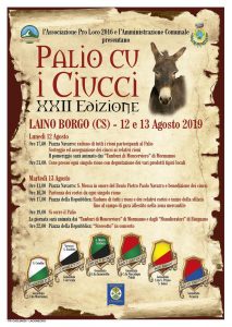 Non sarò conosciuto come il Palio di Siena, ma è proprio dalla competizione in forma di giostra equestre toscana che prende origine il Palio cu i ciucci che da ben 22 edizione anima la sfida tra contrade della cittadina di Laino Borgo. Il lainese, Settimo Rossi, sposato con una contradaiola di Siena decise di replicarlo, alla maniera calabra, e nel 1976 iniziò la competizione tra i rioni che compongono la cittadina del Parco Nazionale del Pollino i quali, al posto dei cavalli usano, per la gara, l’asino sfidandosi in una giostra cavalleresca dal sapore comunitario.