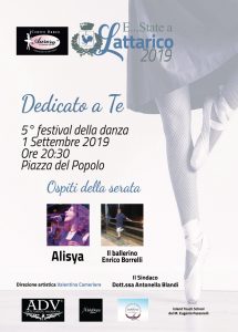 Domenica 1 settembre alle ore 20.30 in Piazza del Popolo a Lattarico si svolgerà la quinta edizione del festival della danza, la manifestazione sarà organizzata in memoria della ballerina Tina Adamo, la giovane mamma morta a Cetraro dopo il parto del suo secondogenito.