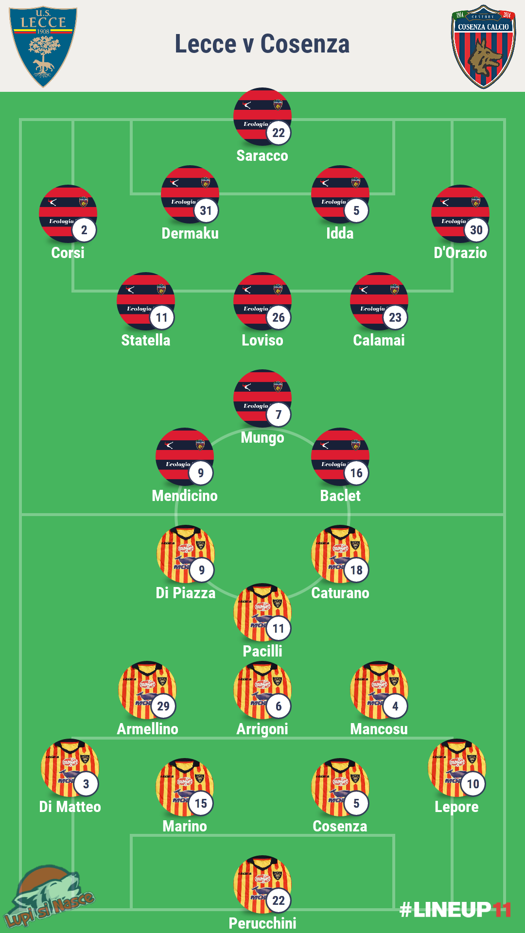 Il Cosenza invece proverà a tentare il colpaccio per tirarsi fuori dalla lotta playout e allontanarsi dalla zona rovente della classifica. Il tecnico Braglia, per la prima volta da quando siede sulla panchina dei rossoblu, ha parlato di playoff come obiettivo alla portata dei suoi, ed è quindi intenzionato a far partire la scalata alla graduatoria.