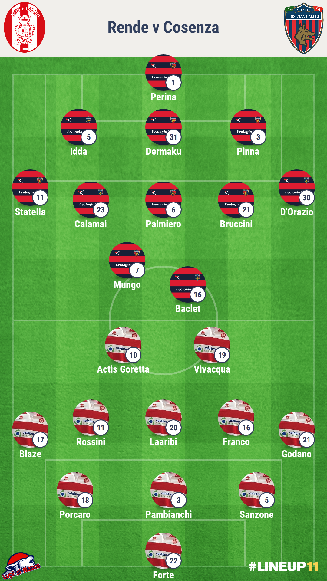 È il giorno del derby dell’area urbana bruzia: il Rende insegue un sogno chiamato playoff, partito contro tutti i favori del pronostico si avvia a chiudere il girone d’andata in una posizione privilegiata, ottenuta grazie ad una difesa ermetica che non subisce reti da 281 minuti. Il Cosenza invece si lecca le ferite: per i silani è una partita da dentro o fuori, le conseguenze dell’ennesimo tonfo sarebbero a dir poco disastrose. La settimana della compagine rossoblu è stata “disturbata” dalle contestazioni sonore della tifoseria, decisa a non accettare in nessun modo un altro passo falso. Il capitano Angelo Corsi si è mostrato comunque ottimista: “Rende sarà la partita della svolta”.