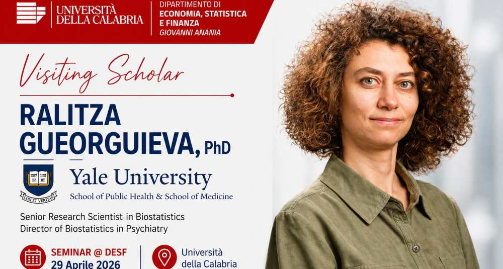 Dipartimento di Economia, Statistica e Finanza “Giovanni Anania” dell’Università della Calabria ospita la prof.ssa Ralitza Gueorguieva, Senior Research Scientist in Biostatistics presso la Yale University School of Public Health e Director of Biostatistics in Psychiatry presso la Yale School of Medicine.