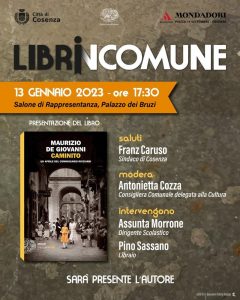 Si fa carico di attesa l’appuntamento di venerdì 13 gennaio, il primo del 2023, della rassegna libraria “LibrinComune”, cui hanno dato impulso il Sindaco Franz Caruso e l’Amministrazione comunale, con l’obiettivo di promuovere un vero e proprio risveglio dell’interesse culturale in città. Curatrice della rassegna è la consigliera delegata del Sindaco alla Cultura, Antonietta Cozza che si è assicurata per questa nuova occasione, la prestigiosa presenza dello scrittore e giallista napoletano Maurizio De Giovanni che presenterà, alle ore 17,30, nel salone di rappresentanza di Palazzo dei Bruzi, il suo ultimo libro, “Caminito”, edito da Einaudi, nuovo capitolo della saga sul commissario Ricciardi.