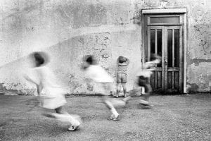 Ci inseguivamo a perdifiato nella penombra in cerca dell’ultimo CENTO; ci si litigava a volte per l’irregolarità del tocco vincente, ci si spingeva, volava anche qualche ceffone, ma la legge dell’aia, piuttosto che della strada, infine invitava i litigiosi a regalare smaglianti sorrisi di pace e amore. L’unico lampione dello spiazzo prendeva intanto ad accendersi lentamente; il cerchio di luce da esso propagato recintava i nostri ultimi schiamazzi. La gioia e la vitalità diventavano cremosamente palpabili. Quel cerchio, per me, rappresenta ancora il Paradiso.