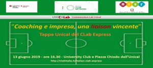 L’Unical ha scelto il tema del coaching e così il 13 giugno proporrà l’iniziativa “Coaching e impresa, una liaison vincente”alla quale interverranno l’allenatore e la squadra del Cosenza Calcio e l’allenatrice e la squadra di calcio femminile a 5 del Cus Cosenza che con i ragazzi di UniCaLab giocheranno una immaginaria ma ideale partita, su un campo d’eccezione le cui regole sono quelle dettate dall’utilizzo virtuoso e sinergico delle funzioni esplicate dai diversi ruoli dei giocatori, siano essi calciatori o membri di un business team.