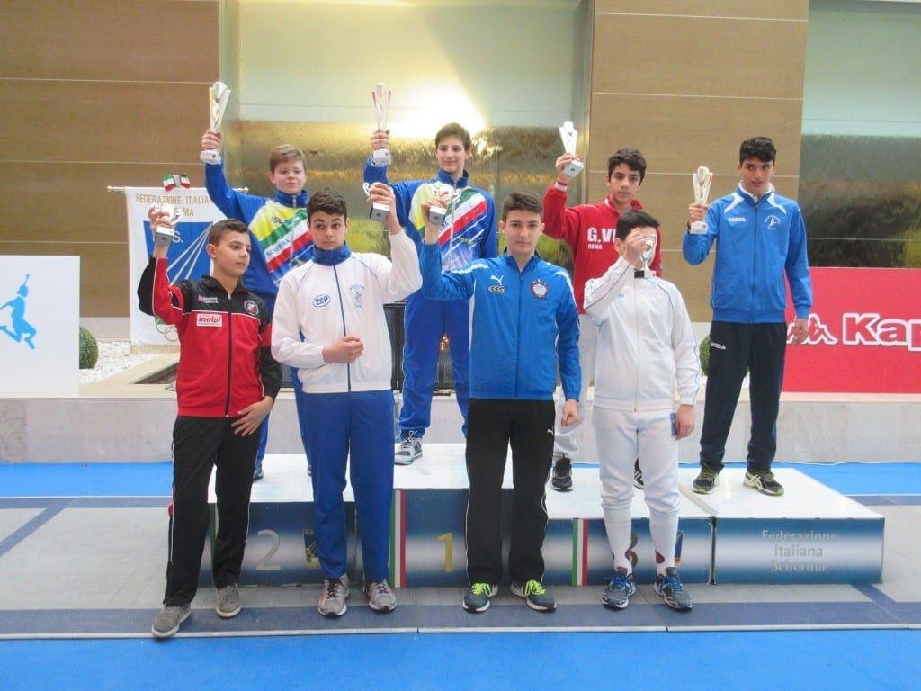 Il protagonista del weekend è stato il tredicenne Gustavo Valente, capace di entrare nella finale a 8 dopo una cavalcata esaltante. La gara era iniziata bene già dai gironi di qualificazione, nei quali aveva ottenuto 4 vittorie e 2 sconfitte. Da lì in poi Gustavo ha inanellato una serie di vittorie contro Bassi (Forlì), Sambucci (Cassino), Bagattoni (Forlì) e Velotti (Napoli). Nell’assalto valido per il podio nulla ha potuto contro Di Veroli (Roma). Per lui un ottimo 7° posto che servirà a dargli la carica in vista dei Campionati Italiani che si terranno a Riccione. Sempre nella categoria Ragazzi di spada maschile, si registra l’84° posto di Alfredo Miniaci, fermato dal casertano De Cesare dopo aver superato i gironi e la prima eliminazione diretta.