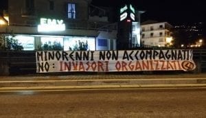 Nella serata di ieri, i militanti di Azione Identitaria Calabria hanno affisso, a Sambiase di Lamezia Terme, uno striscione con scritto: “minorenni non accompagnati? No: invasori organizzati!”.