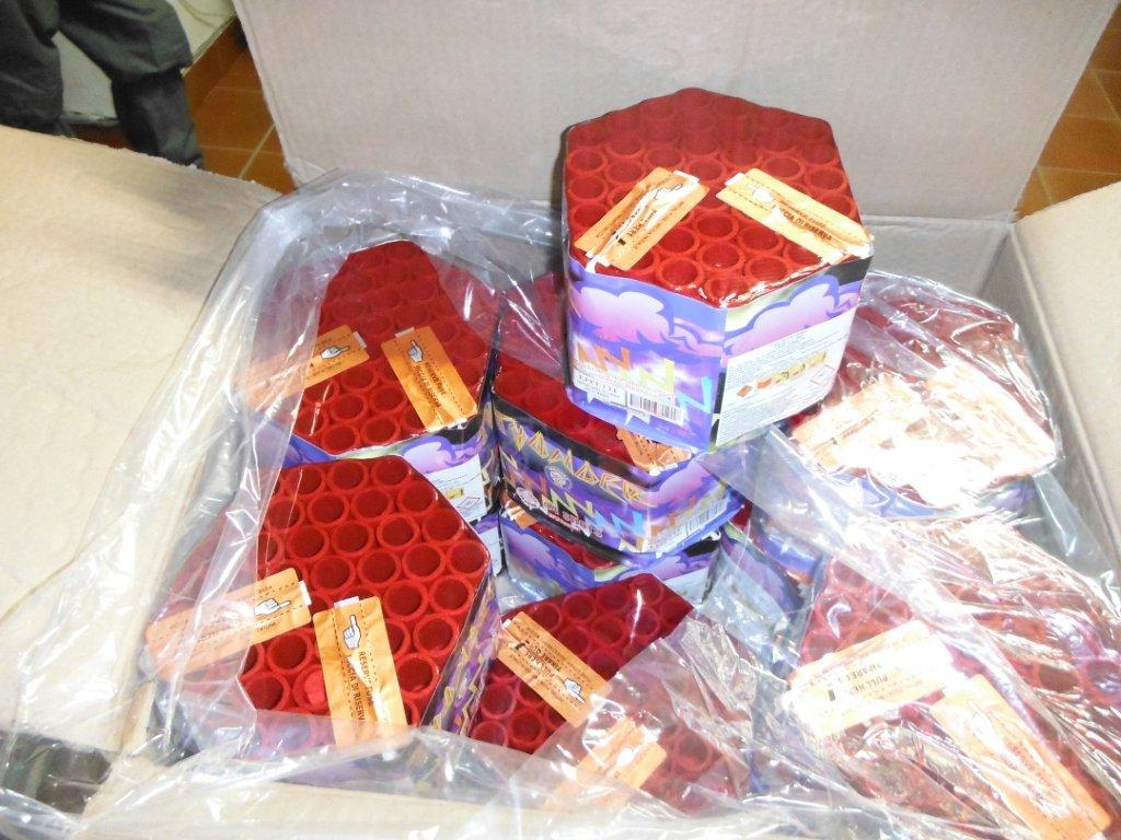 Su disposizione della Procura di Castrovillari, competente per territorio, si è proceduto al sequestro di 19 cartoni contenenti varie tipologie di fuochi pirotecnici, batterie e bombe sferiche di varie dimensioni, per un totale di 437 kg di cui 97 kg di polvere pirotecnica.