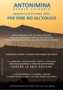 Per queste ragioni, per rivendicare lavoro vero e futuro sostenibile per chi vive in Calabria, domenica 8 ottobre saremo ad Antonimina al fianco del Coordinamento No Eolico Calabria.