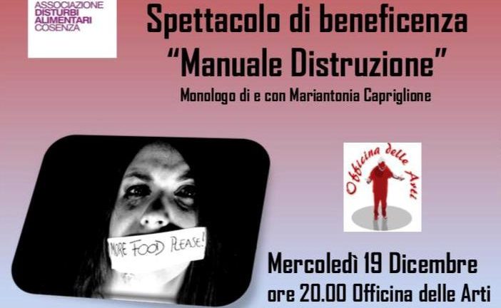 Si terrà domani mercoledì 19 dicembre alle ore 20:00 a Cosenza presso il Teatro Officina delle arti lo spettacolo benefico organizzato dall’ l’ADAC (Associazione Disturbi Alimentari Cosenza).