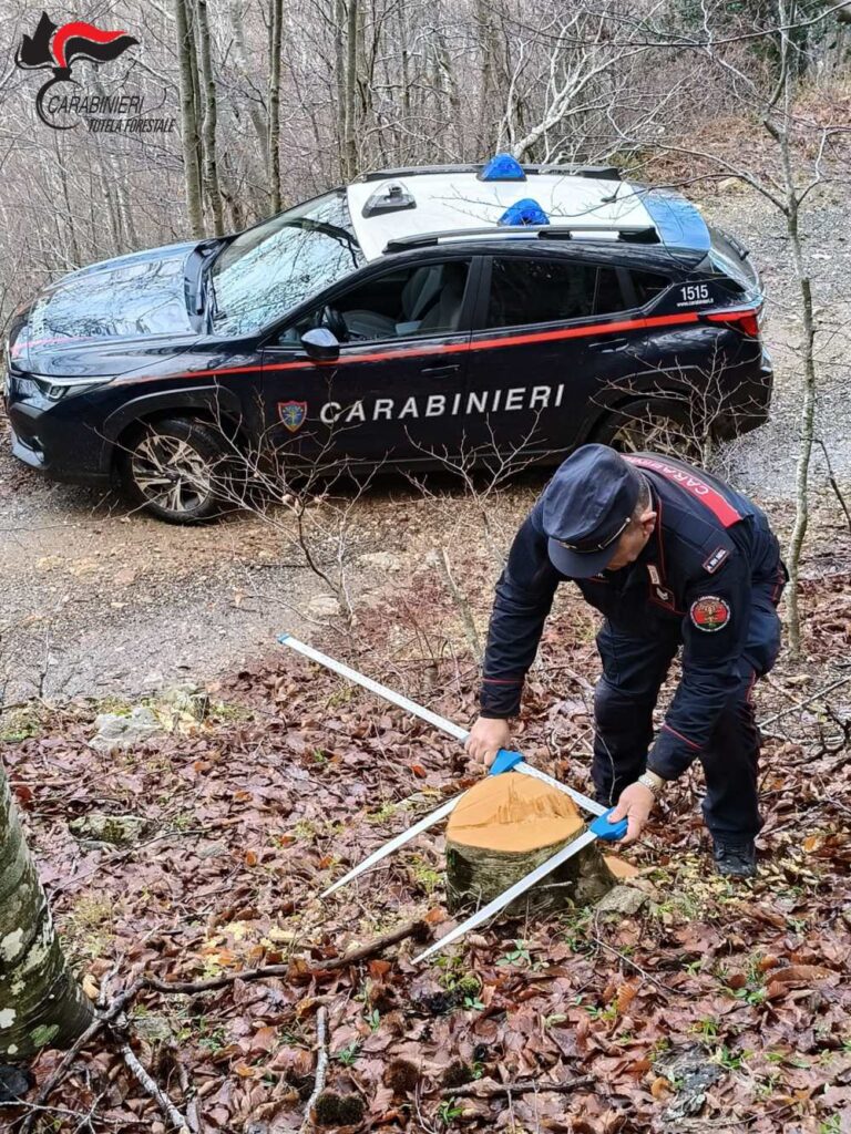 Nello specifico si constatava il recentissimo taglio di otto piante di faggio di grandi dimensioni dalle quali era stato prelevato il fusto sezionato rinvenuto sull’autocarro mentre sul posto erano stati lasciati i cimali e la ramaglia.