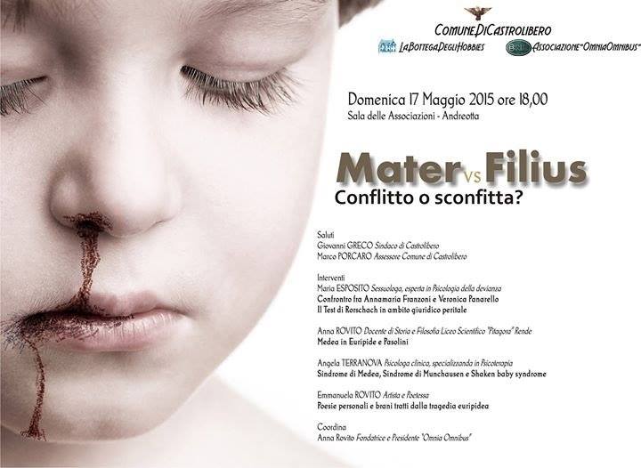 Si terrà domenica 17 maggio alle ore 18 presso la sala delle associazioni ad Andreotta di Castrolibero, il convegno “mater vs filius – conflitto o sconfitta?” che tratta il tema delle madri assassine